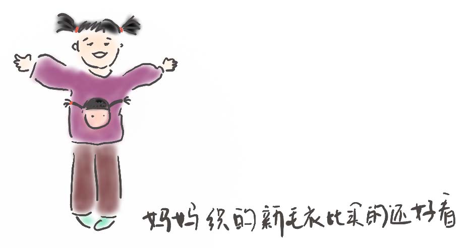 媽媽給我織了一件新毛衣,上面有一個娃娃頭,娃娃的辮子還是翹起來立體的,我喜歡得不行,想要趕快穿出去讓所有人都看到。
