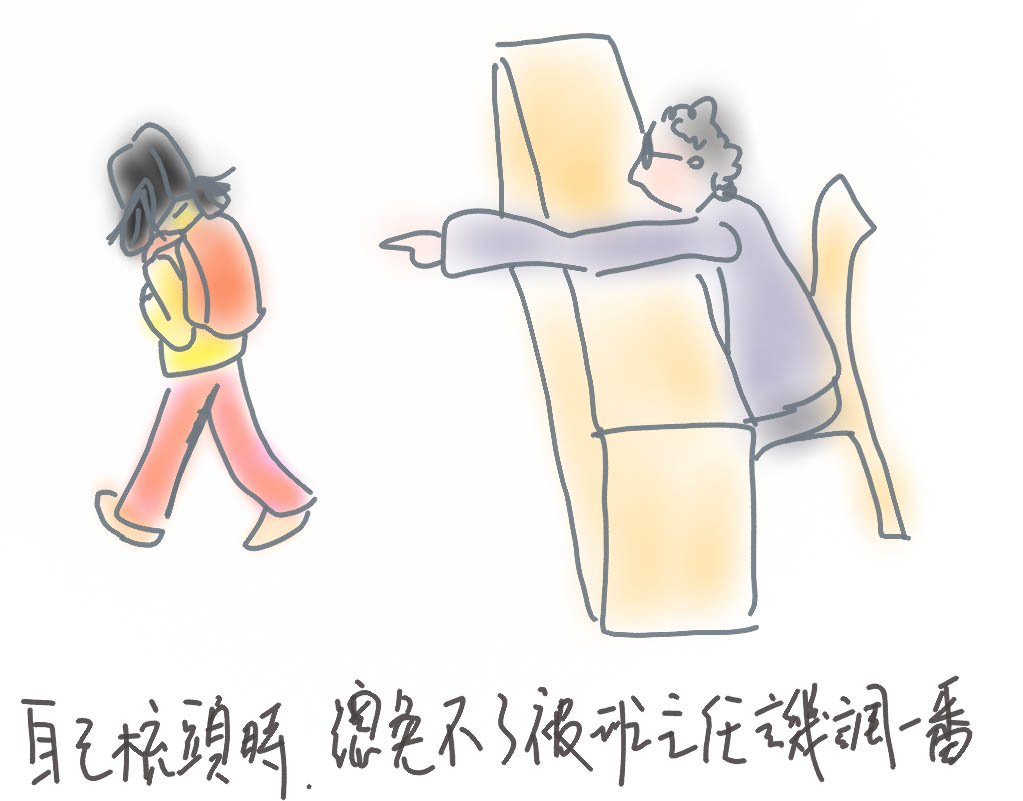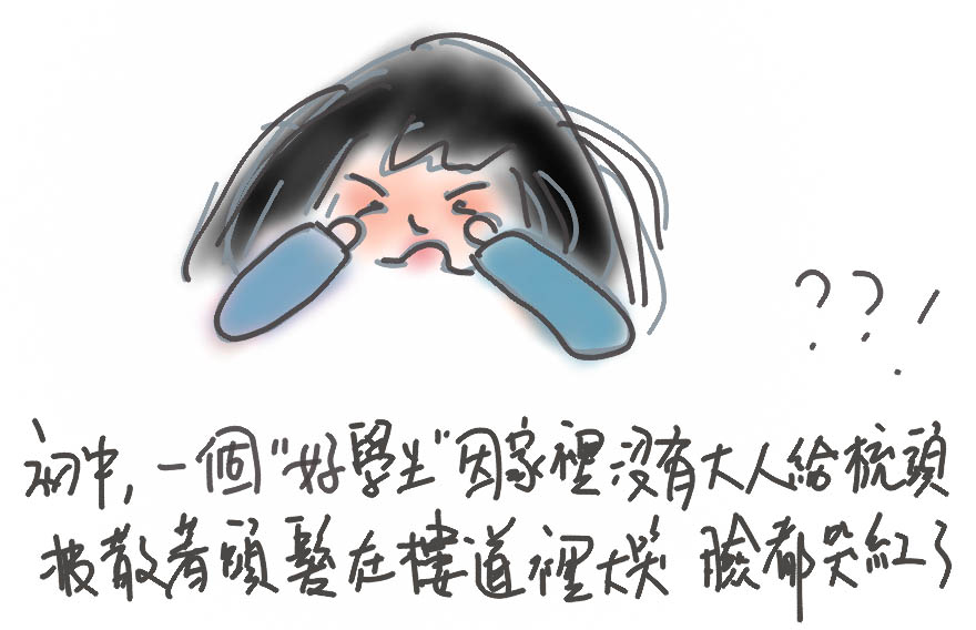 如果哪天剛好是我爸給我梳頭,班主任就會表揚我當天頭髮整齊,再順帶著譏諷一下平時的狼狽。對此,我習以為常,無感。